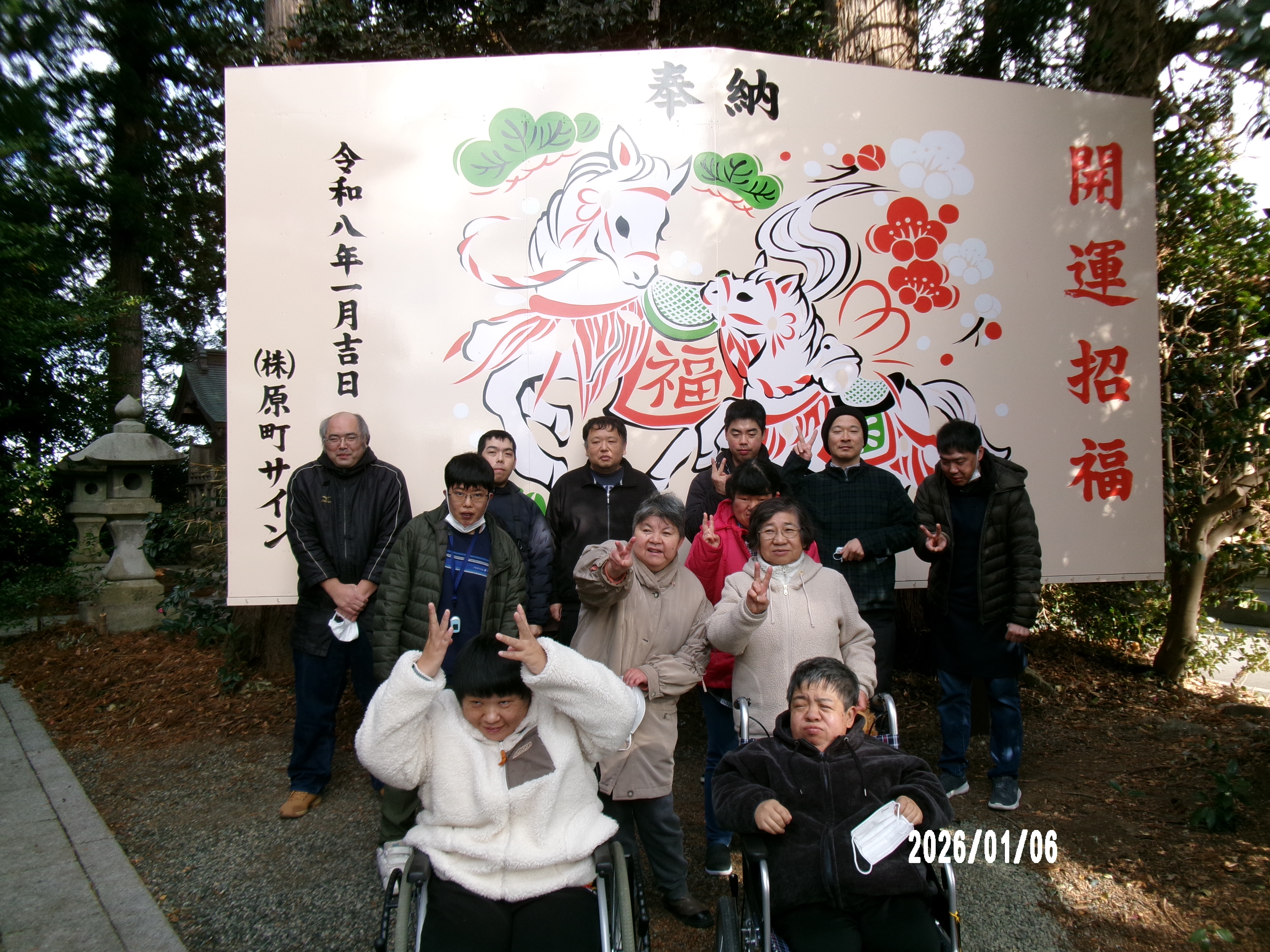 2026年1月6日~8日 三日間に班分けをし「元朝参りドライブ」に行きました。鹿島区「男山八幡神社」へ行き参拝をしました。お守りを購入した利用者さんもいました(^^)「セデッテかしま」にも立ち寄りアイスを食べたり、お土産を購入したりと楽しく過ごしてきました(^^)/