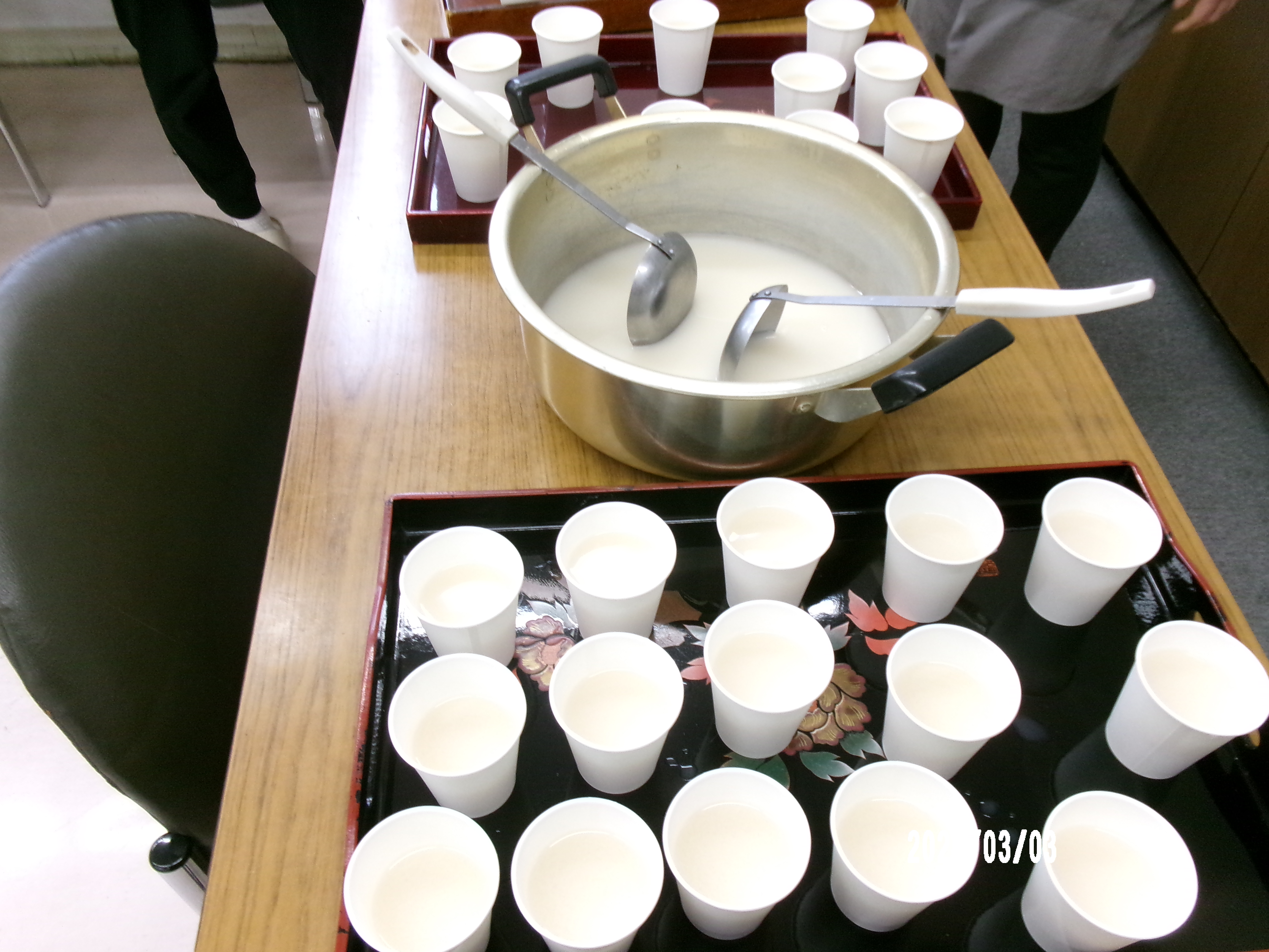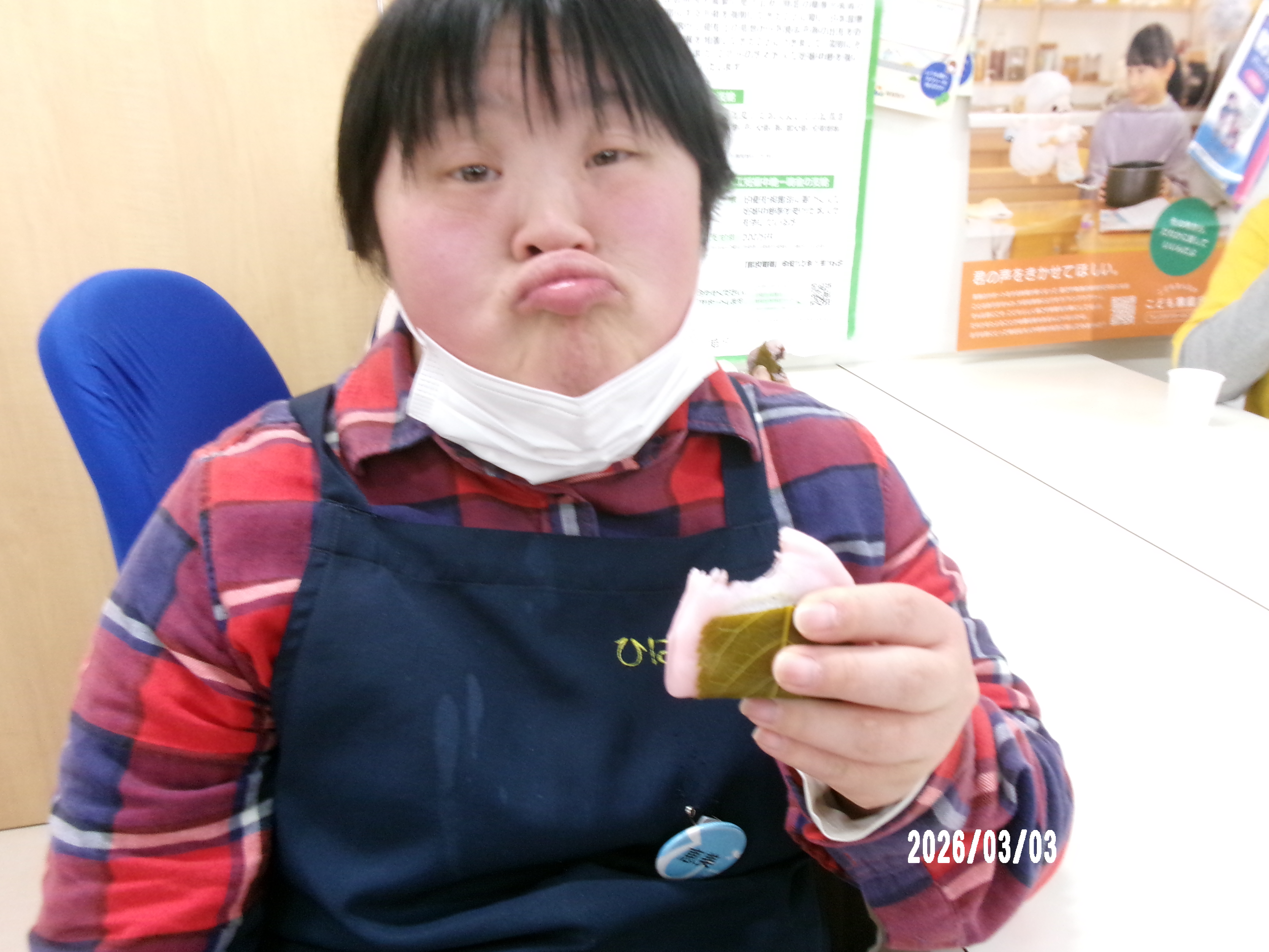 2026年3月3日 今日は「ひな祭り🎎」ということで、桜餅と甘酒を提供しました。皆で美味しくいただきました~ ^^) _旦~~