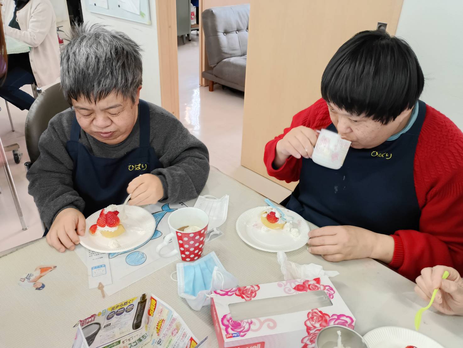 2026年3月12日 今月の行事は「皆でクッキング♪」でした。ロールケーキにイチゴとホイップクリームでデコレーション☆出来上がったら皆で「いただきま~す♪」とても幸せなひと時でした( *´艸`)楽しく、美味しく、大満足でした☆