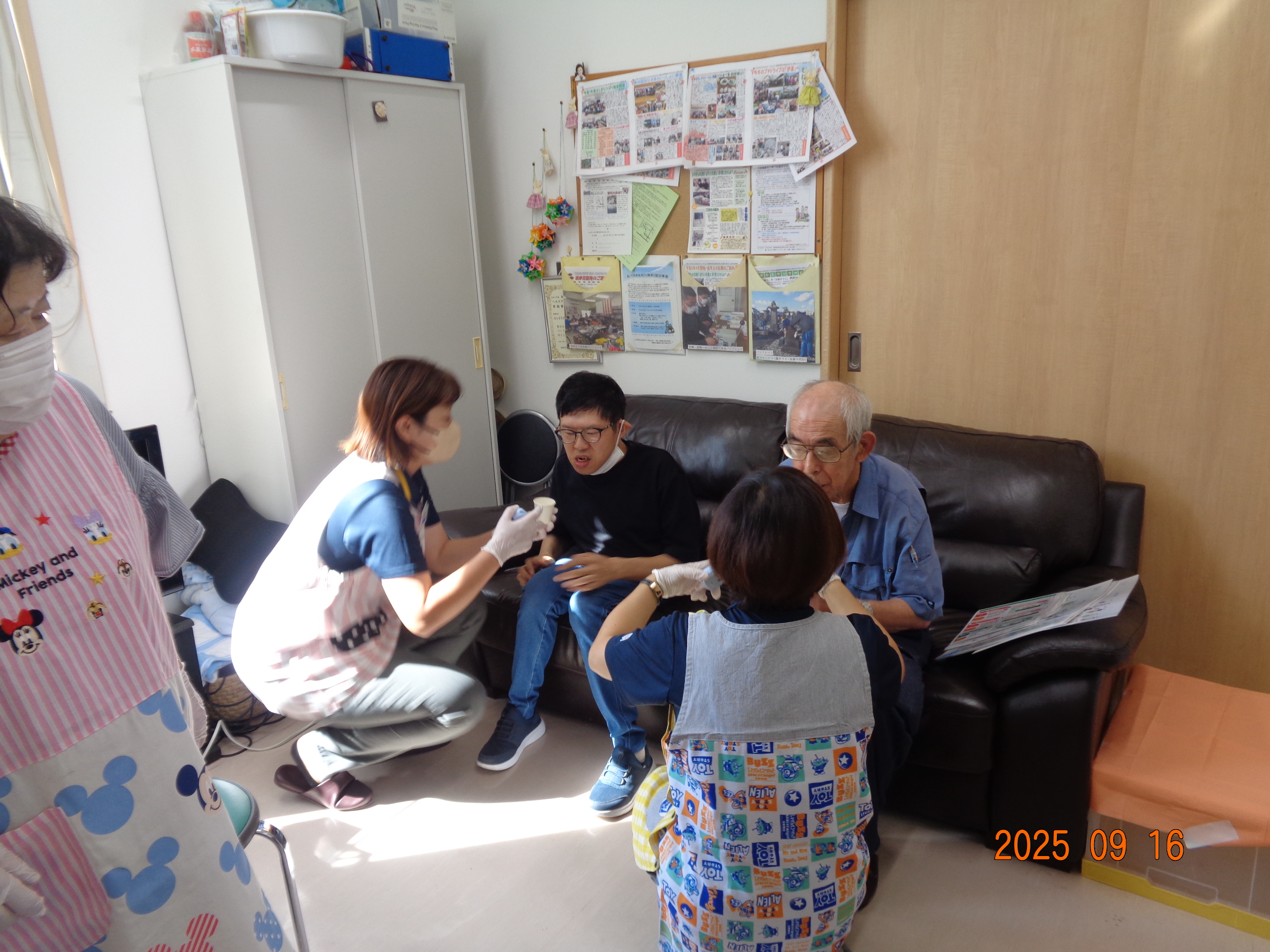 2025年9月16日~17日 市健康づくり課からご案内を頂き「歯周病簡易検査」を実施しました。2日間に分かれ20名の利用者さんが参加しました。