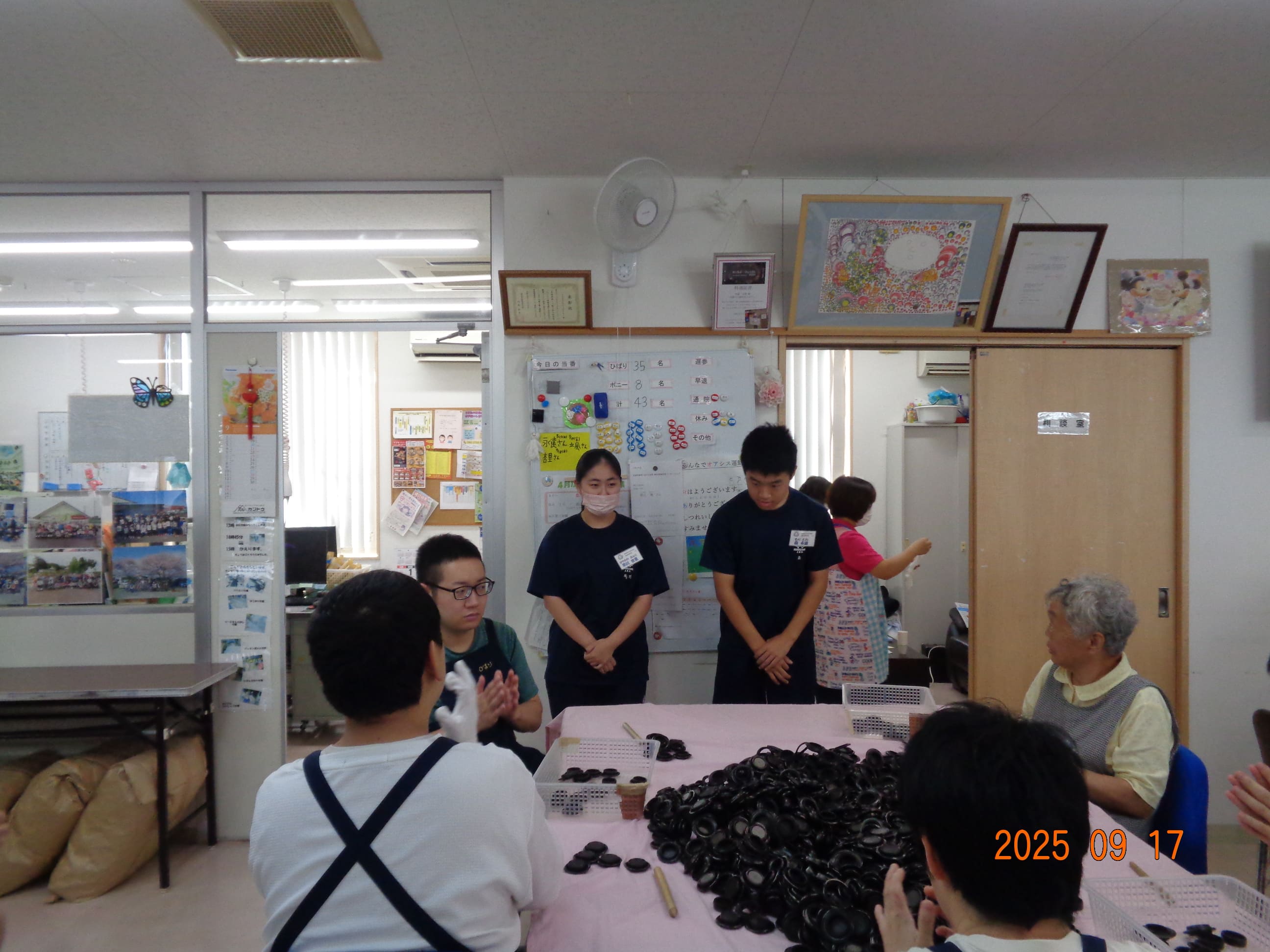 2025年9月8日~9日 郡山支援学校高等部3年生の男子生徒1名が実習に来ました。利用者さんと一緒に作業に取り組んだり行事を楽しみました。9日間ご苦労様でした!