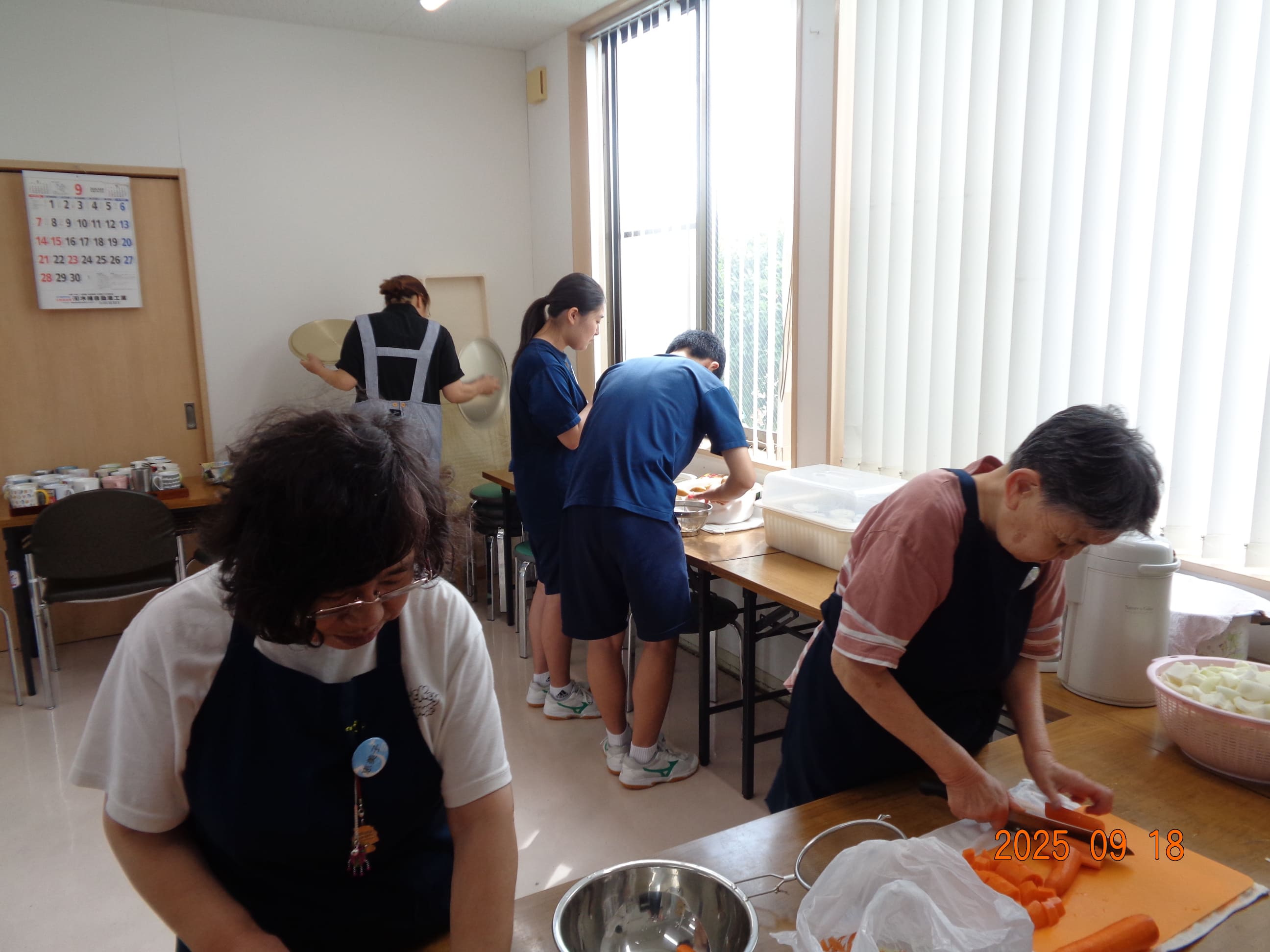 2025年9月18日 「カレーの日」でした(^^)調理には利用者さん、実習生にも手伝ってもらいました。とっても美味しかったです♪